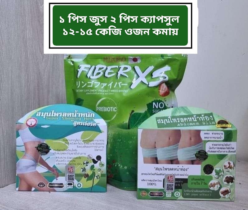 প্রাকৃতিক ও নিরাপদ! Fiber XS Slimming Juice ও Super Slimming Herb Tablet—দুইটিই ১০০% হারবাল, BSTI অনুমোদিত ও বাংলাদেশ সায়েন্স দ্বারা পরীক্ষিত। অতিরিক্ত মেদ, ভুঁড়ি ও শরীরের জমে থাকা ফ্যাট কমাতে এই কম্বো একসাথে কাজ করে। সম্পূর্ণ পার্শ্বপ্রতিক্রিয়ামুক্ত, সেফ ও দ্রুত ফলদায়ক!